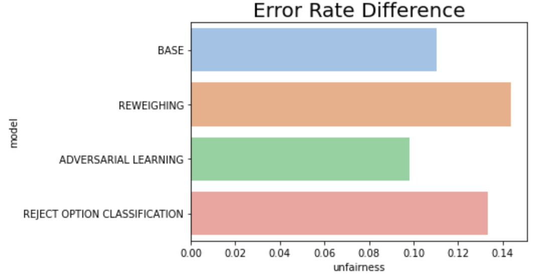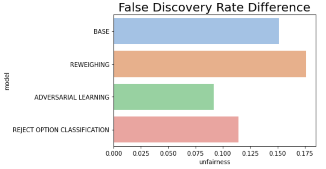 - Error Rate이나 FDR의 경우, 일부 모델은 오히려 불공정 정도가 베이스 모델에 비해 심화되었다.