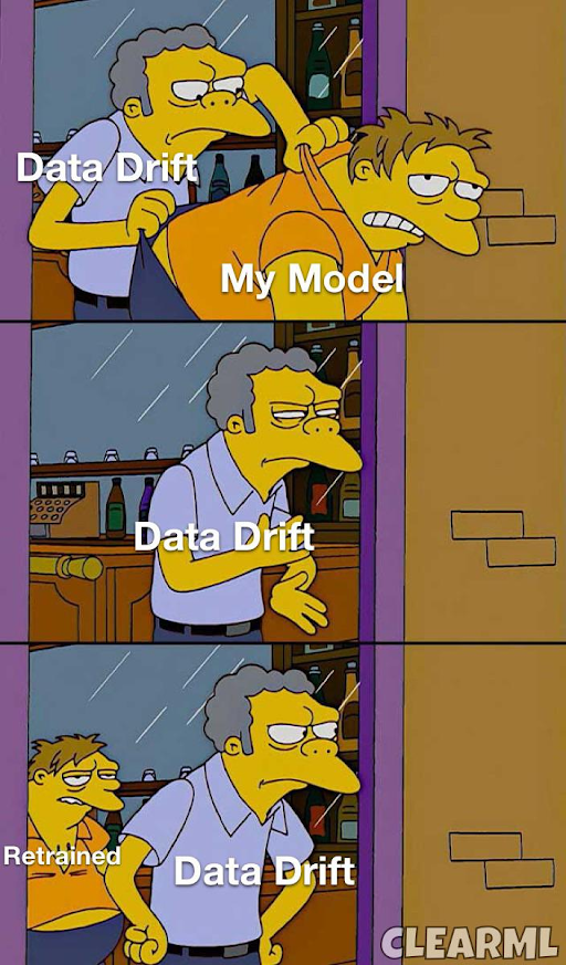 그리스의 철학자 헤라클레이토스는 “같은 강물에 두 번 발을 담글 수 없다”라는 말을 남겼다고 합니다. 강물이 끊임없이 흐르기 때문에 어떤 사람이 똑같은 자리에 서서 두번째로 발을 넣는다 한들 그건 처음과 같은 강물이 아니라는 뜻이죠. 마찬가지로 현실 세계의 데이터도 끊임없이 변화합니다. 일반적으로 ML 모델을 프로덕션 단계로 보내기 전에 우리가 원하는 수준의 성능을 보이는지를 확실히 하고 넘어가지만, 문제는 그 이후에 데이터가 변할 가능성이 크다는 것이고, 대부분의 경우 변한다는 것입니다. 모델은 적용되는 그 순간부터 학습에 사용했던 데이터와 다른 데이터를 맞닥뜨리게 됩니다. 운이 좋다면 한동안은 잘 돌아가겠지만 시간이 더 지나면 높은 확률로 테스트 결과와는 다른 성능을 보이게 될 겁니다.
